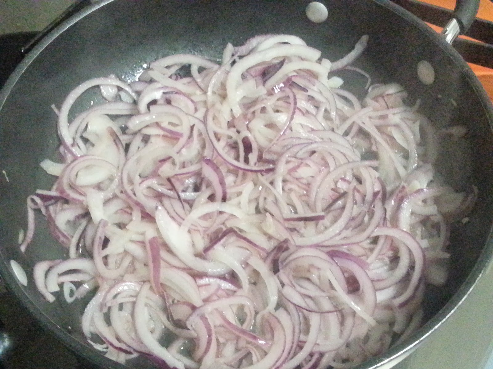 Affettiamo a velo le cipolle e rosoliamole in una noce di burro e un filo d'olio. Abbassiamo la fiamma e facciamole cuocere per 20 minuti.