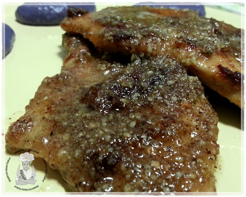 Usare la carne bianca è un ottimo modo per risparmiare in questi tempi bui, oltretutto è talmente duttile che si può preparare in mille modi, dal più comune al più inusuale, come questo. Delle facilissime scaloppine con il pesto di nocciola accompagnate dalle coloratissime patate viola insaporite con un mix di erbe di Ariosto.